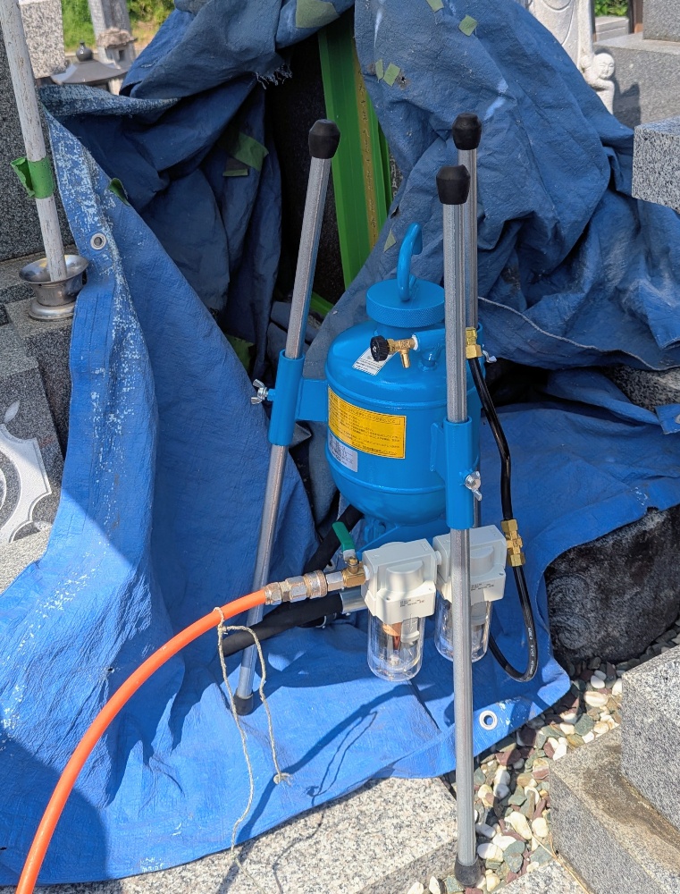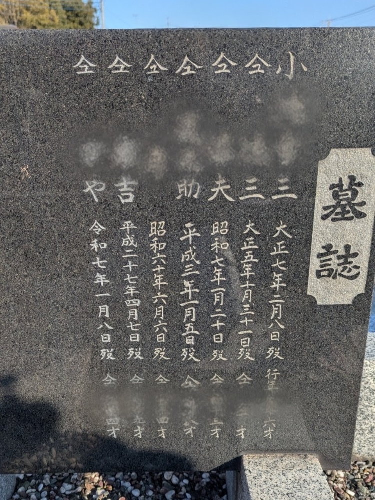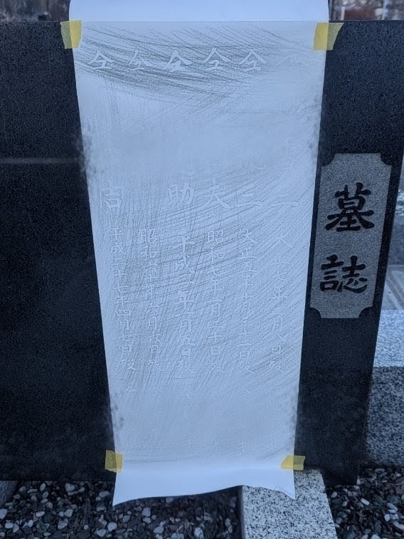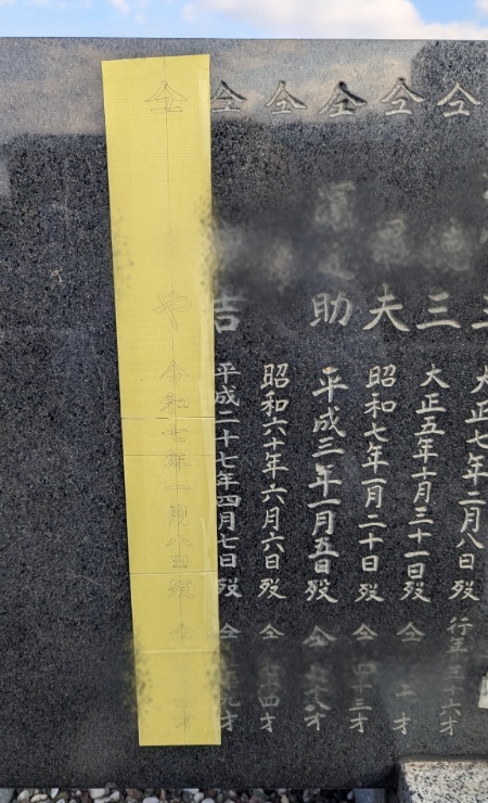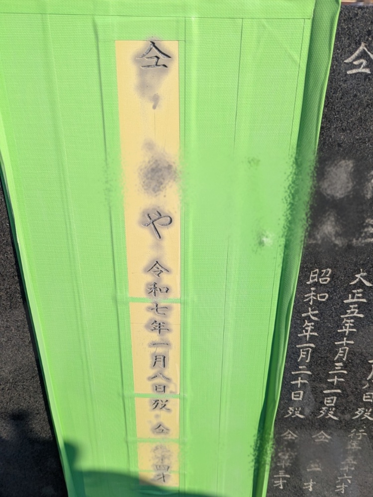 色入れから時間が経って薄れてしまった墓石の彫刻に、